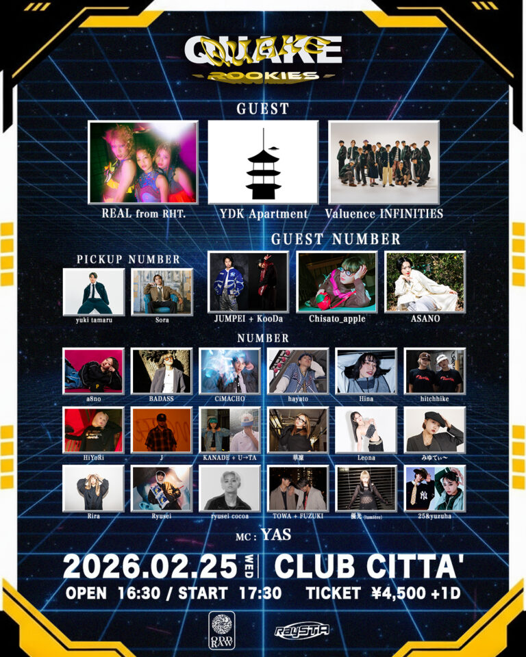 QUAKE -ROOKIES-【日程】2026年2月25日(水)OPEN 16:30/START 17:30 【開催場所】CLUB CITTA...